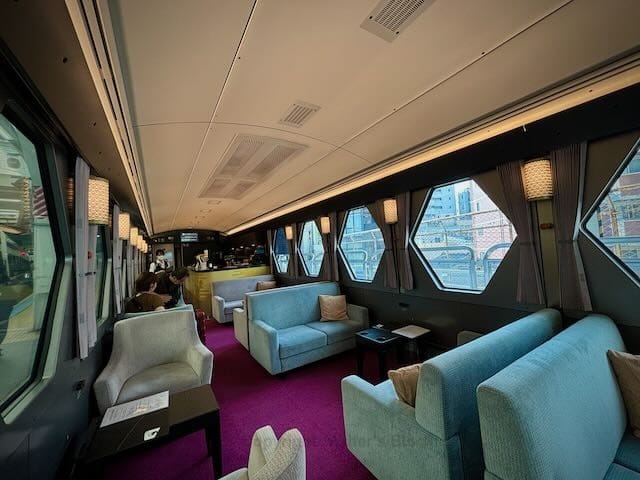 The train has six carriages with six seating configurations: Cockpit Lounge, Cockpit Suite, Premium Seat, Standard Seat, Box Seat and Compartment. We used the Cockpit Suite service for the outbound leg and the Premium Seat service for the inbound leg.