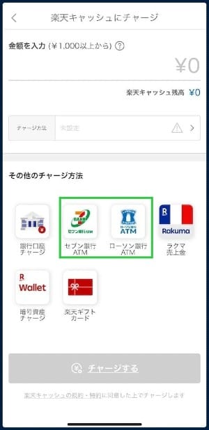 The next page listed a number of top-up methods: bank account transfer, ATMs owned by 7-Eleven or Lawson, Rakuma (Japanese: ラクマ), Rakuten Wallet or Rakuten gift cards (Japanese: 楽天ギフトカード).