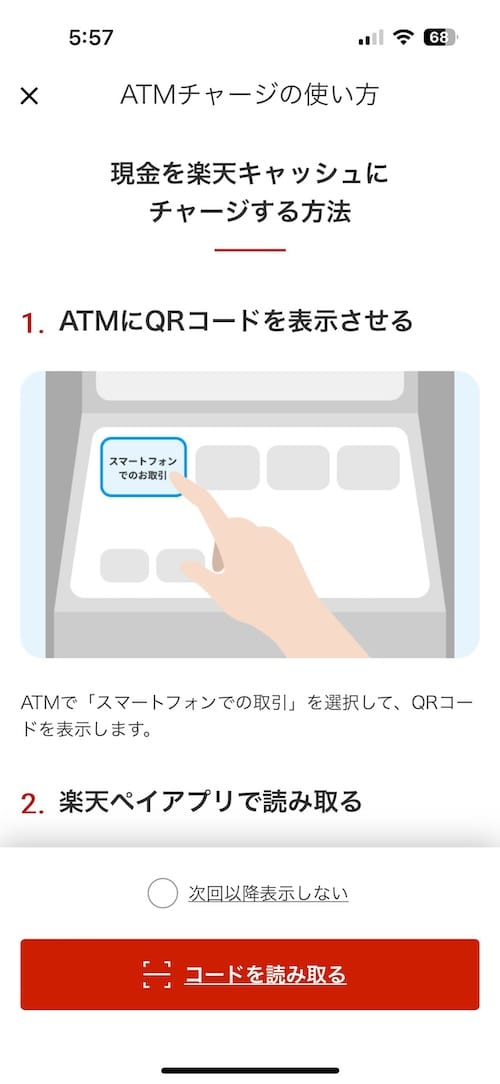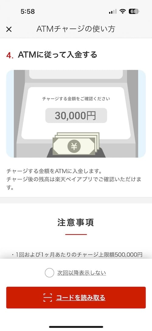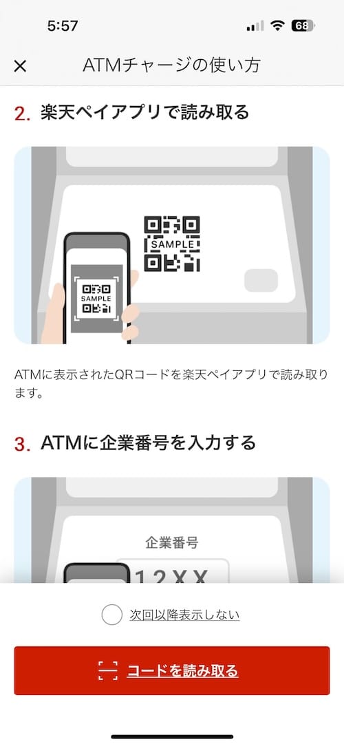Step 2: I scanned the ATM's QR code with my Rakuten Pay app. This generated a 4-digit code.