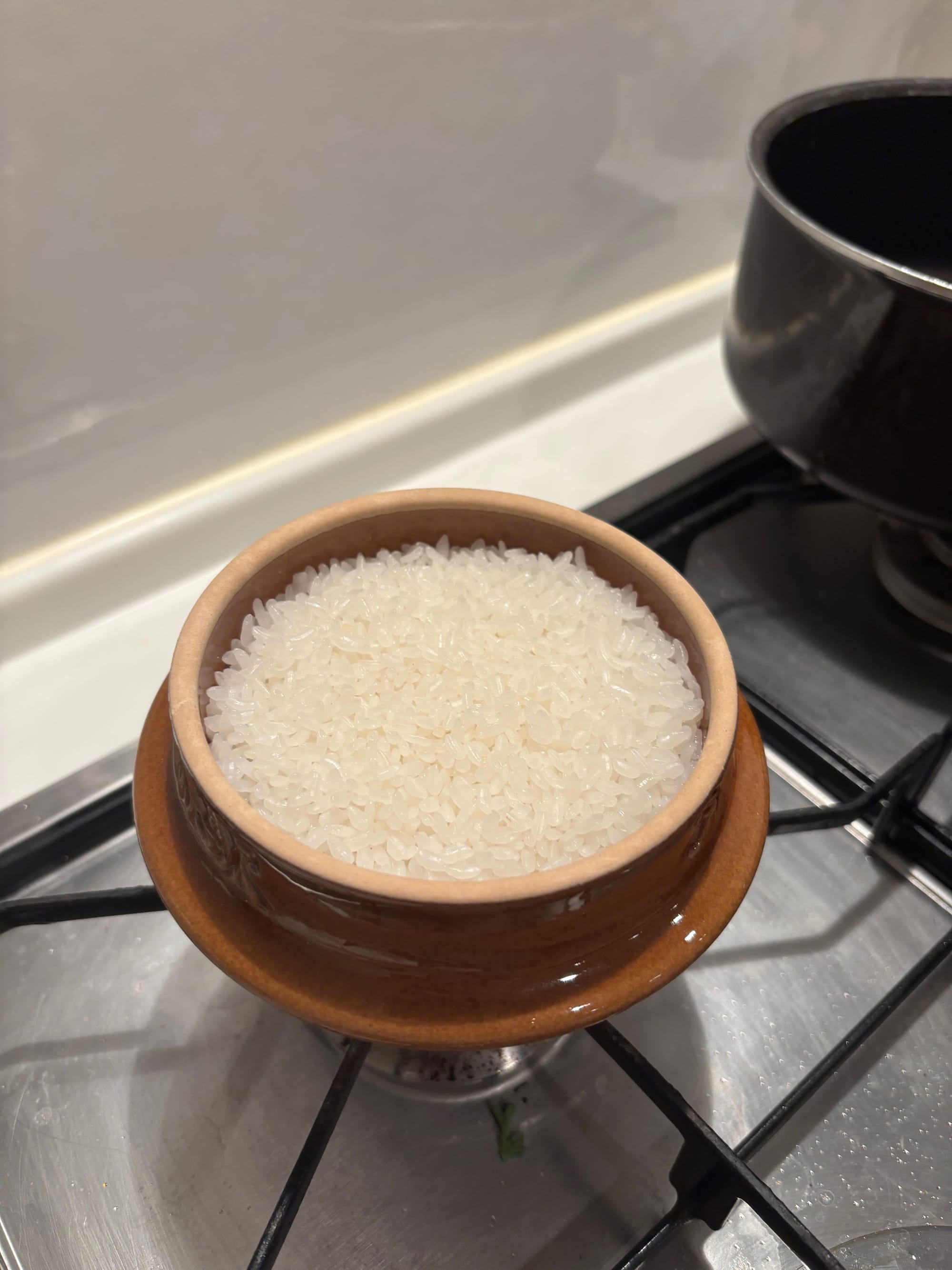 I decided make rice with the kama using my usual rice recipe - one cup rice, one cup water.