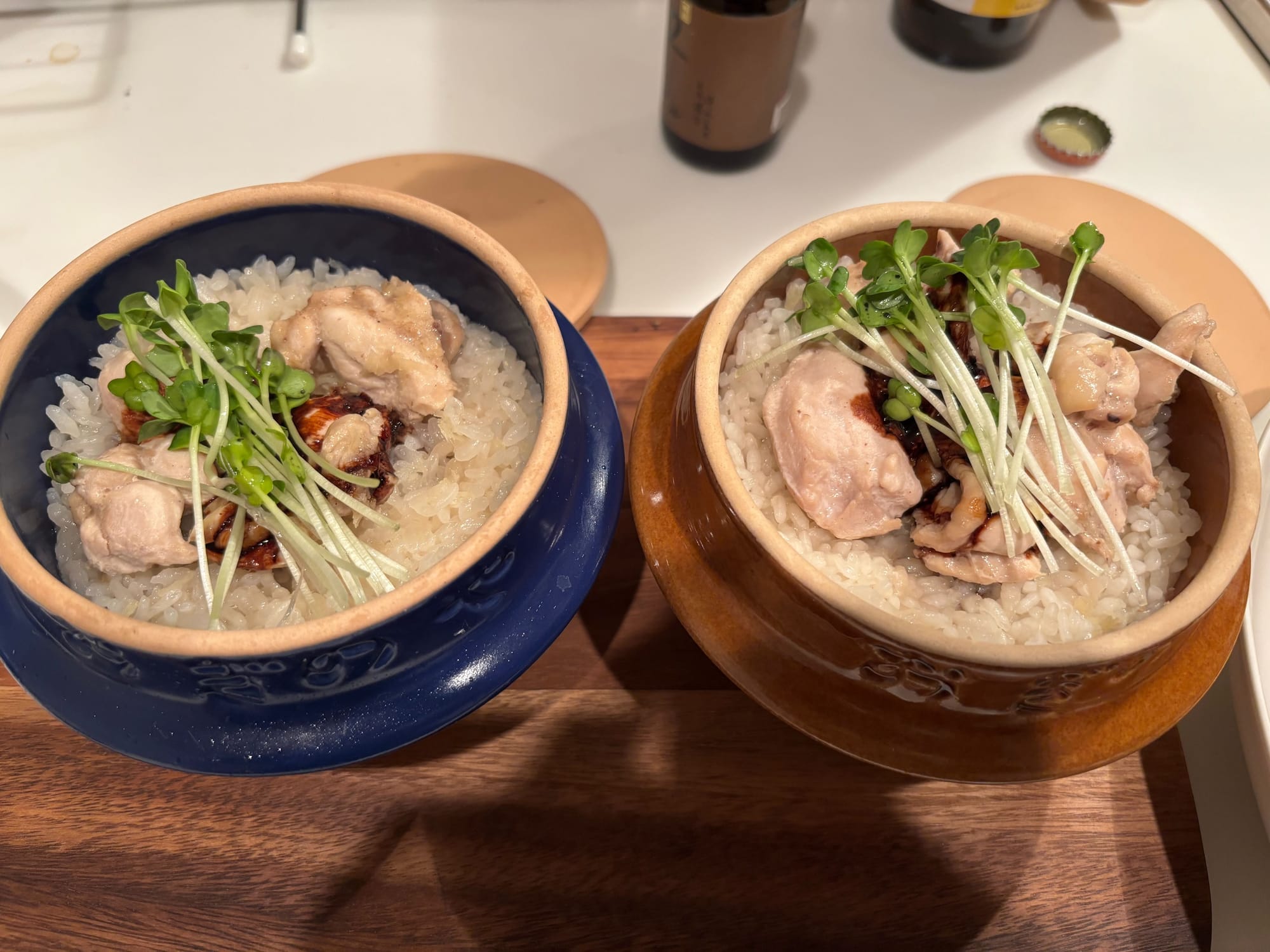 Buoyed by my success, I made a rice and chicken kamameshi using this YouTube video's one-pot chicken rice recipe. Things turned out pretty well too.