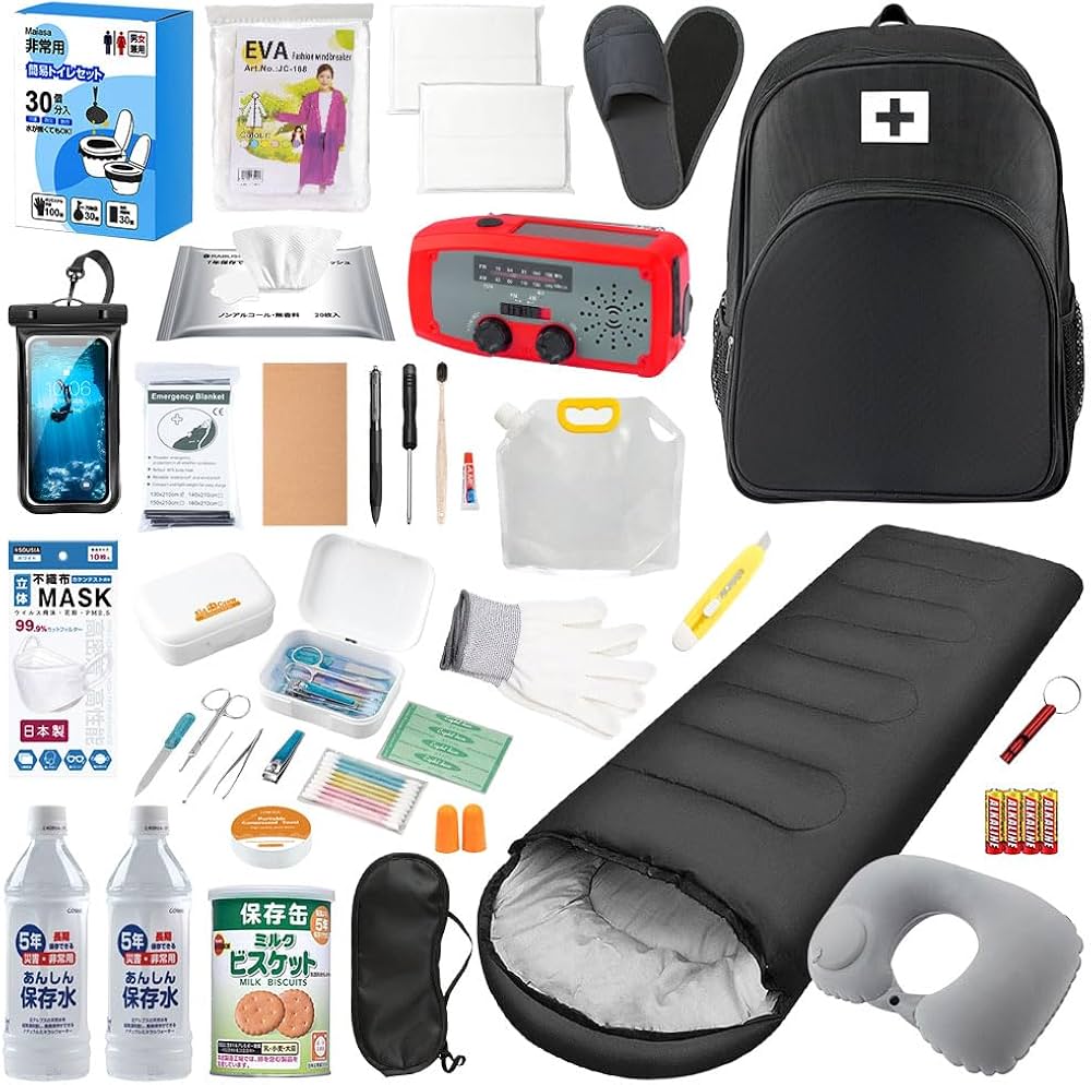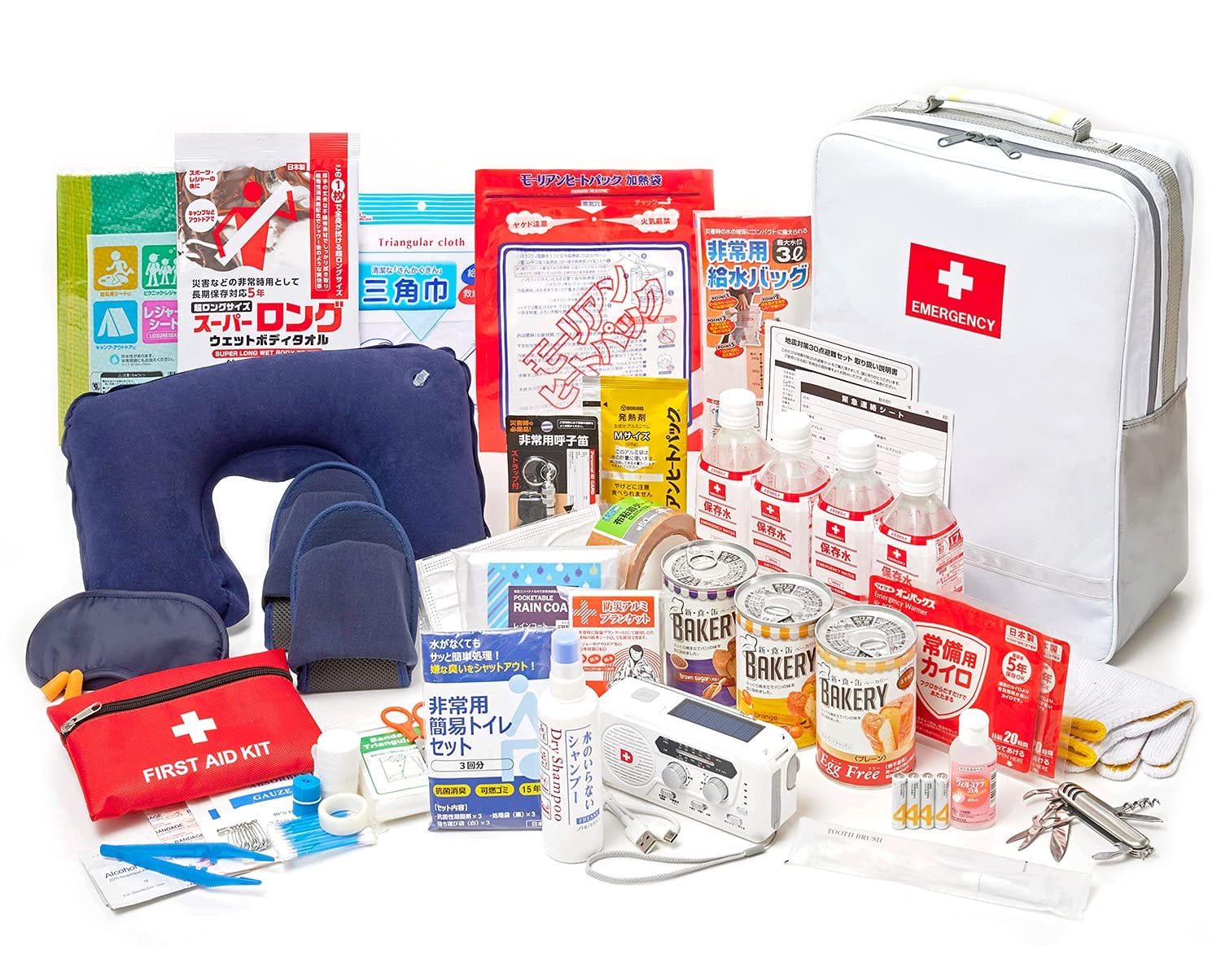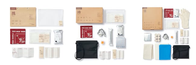 Pre-packaged kits are widely sold. Some districts even hand out basic kits for free. Some kits, like Muji's emergency kit, are designed to be easily stored on your bookshelf.