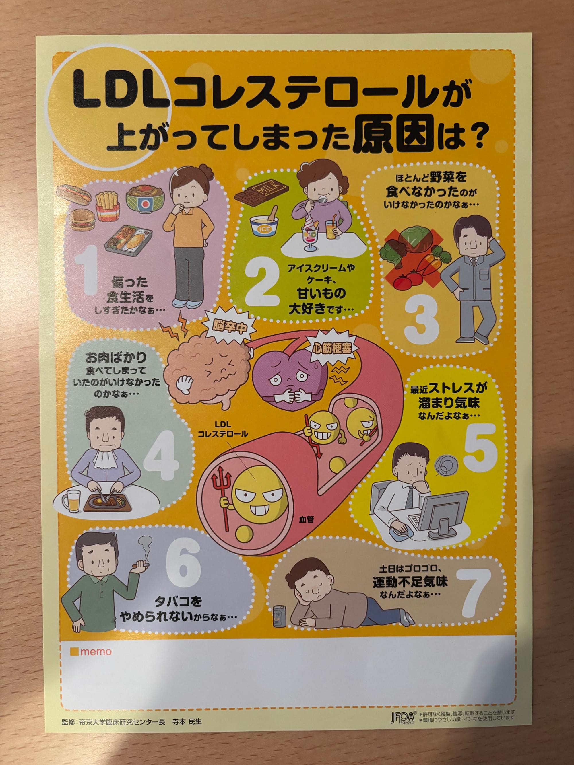 As my low-density lipoprotein ("LDL") cholesterol was on the high side, I was given pamphlets (all in Japanese) on what LDL is, factors contributing to high LDL and risks related to high LDL (heart disease and stroke).
