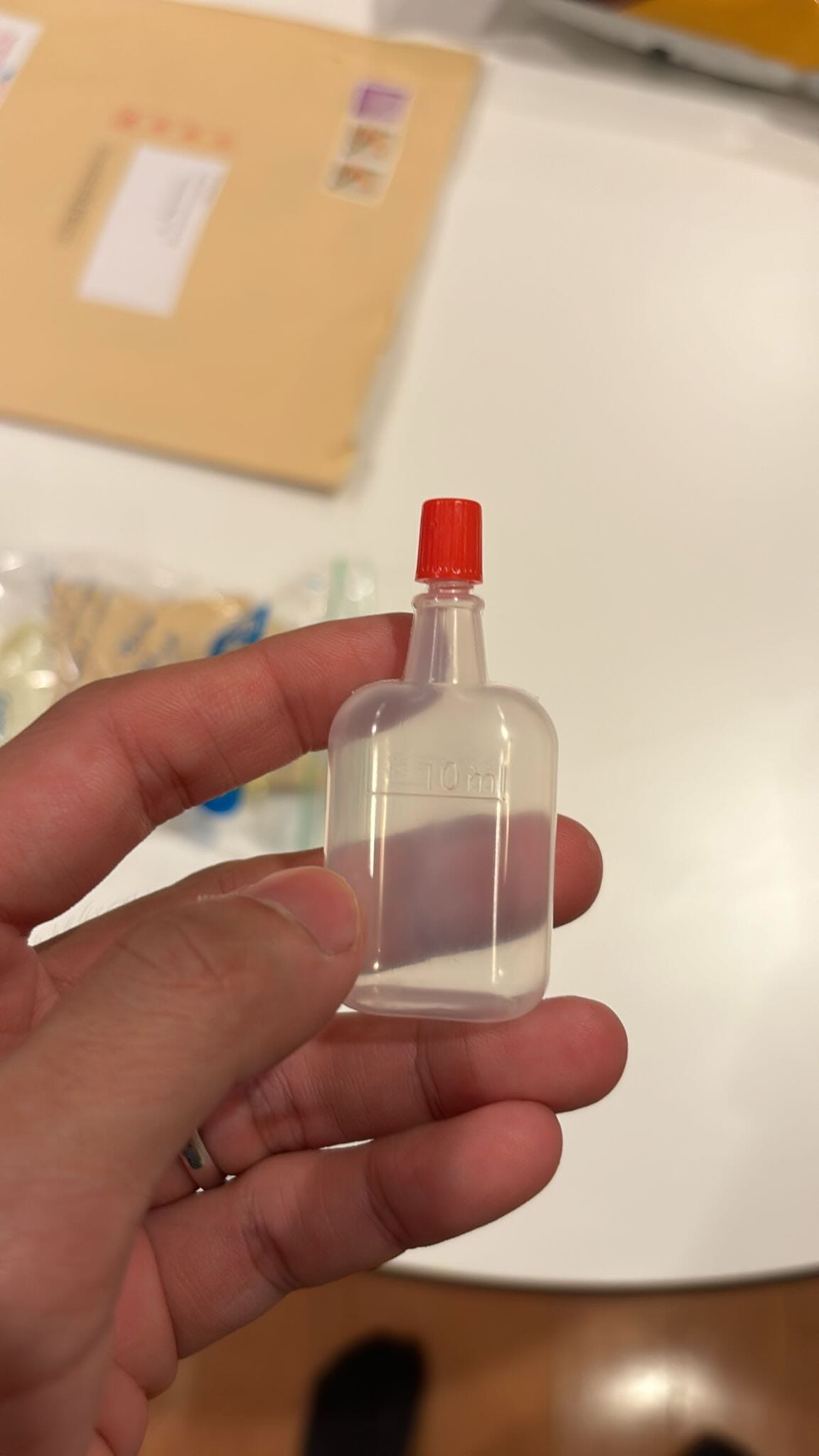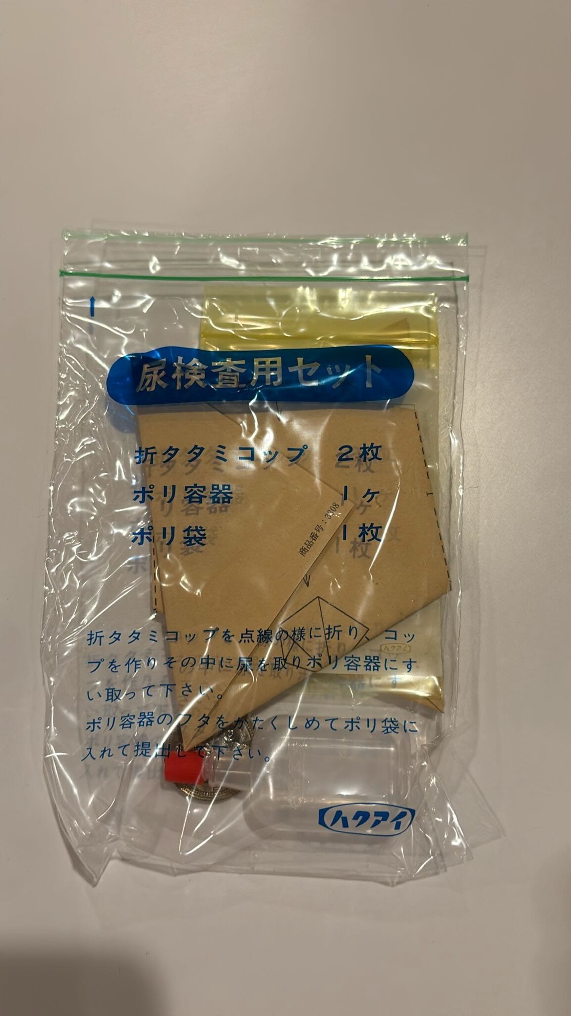 The envelope also contained the equipment for my urine test: a small tube to deposit my urine in and an origami paper cone.