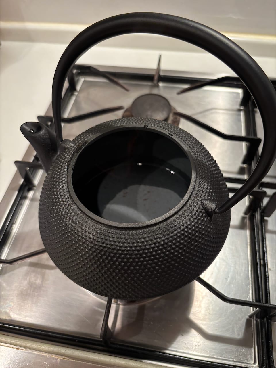 I recently started a new daily routine of boiling water using a traditional Japanese cast-iron kettle called a tetsubin (Japanese: 鉄瓶), which has been around since the end of the Edo period (Japanese: 江戸時代).