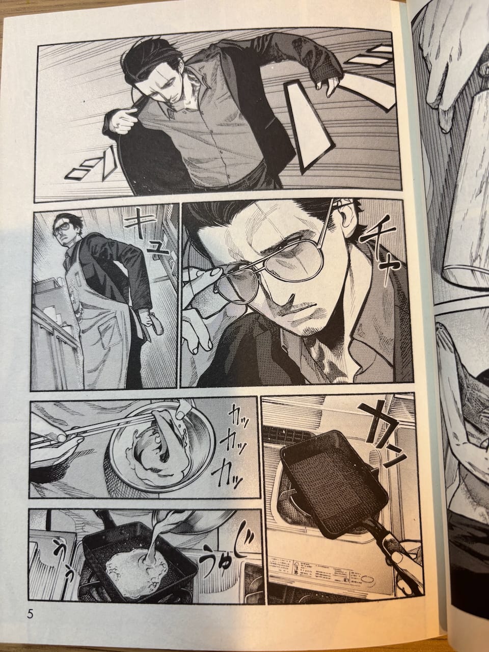 Tatsu making a tamagoyaki for his wife