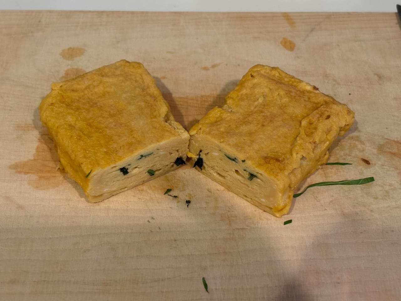 Making a shiso leaf tamagoyaki