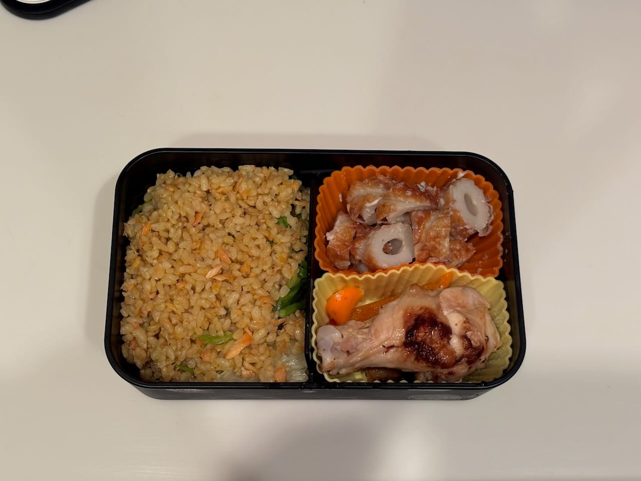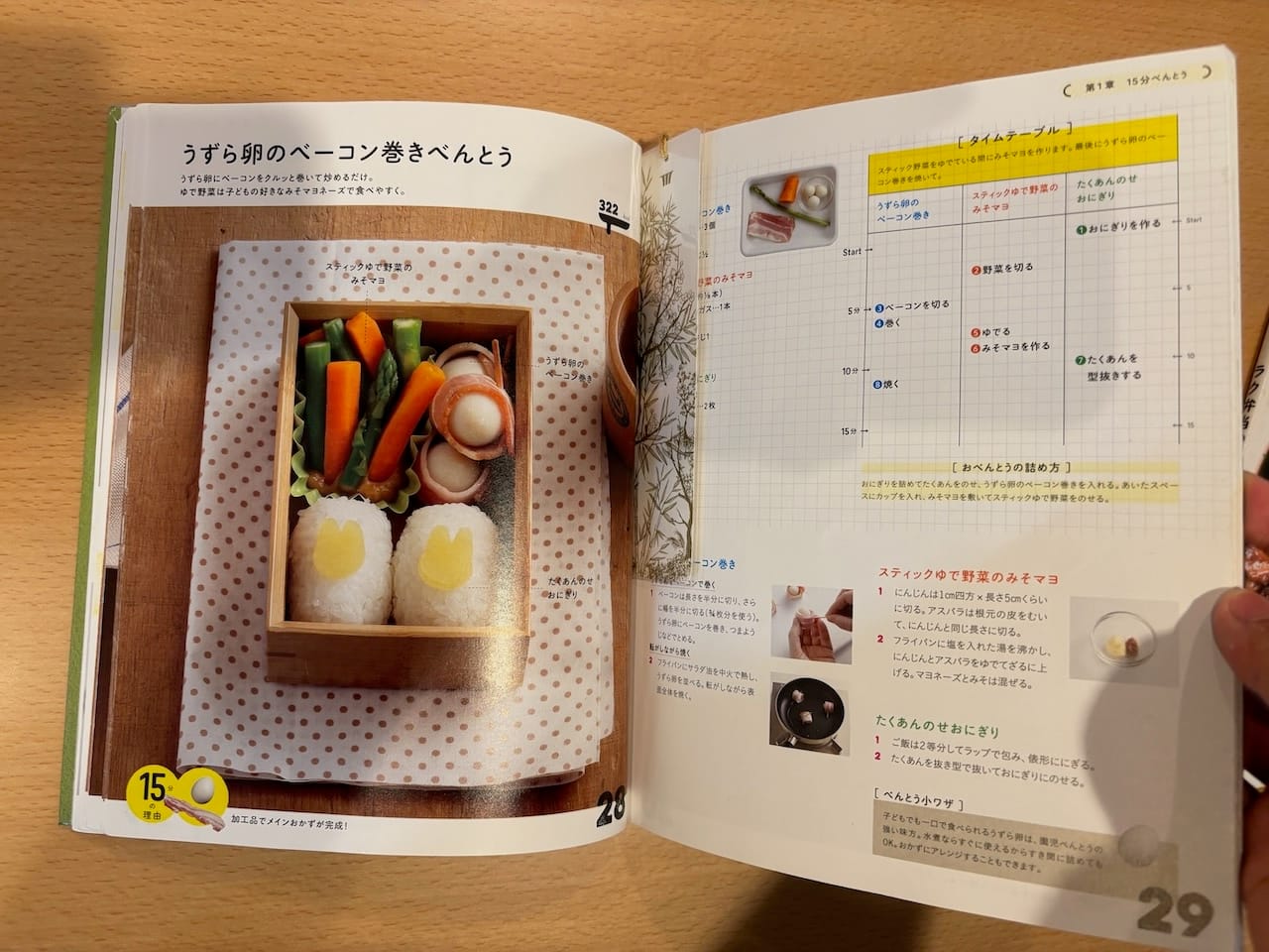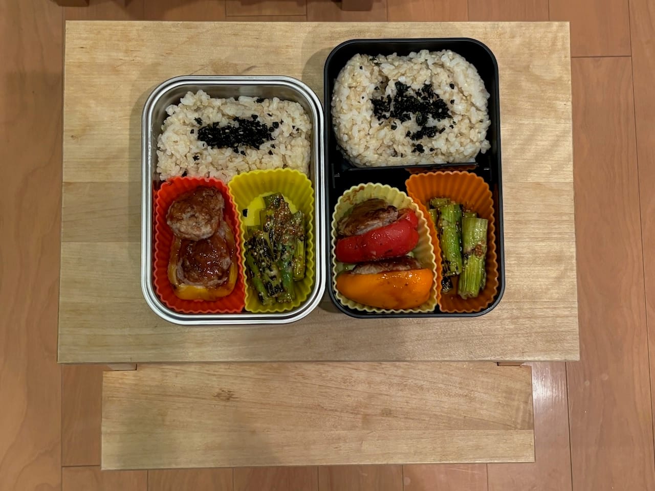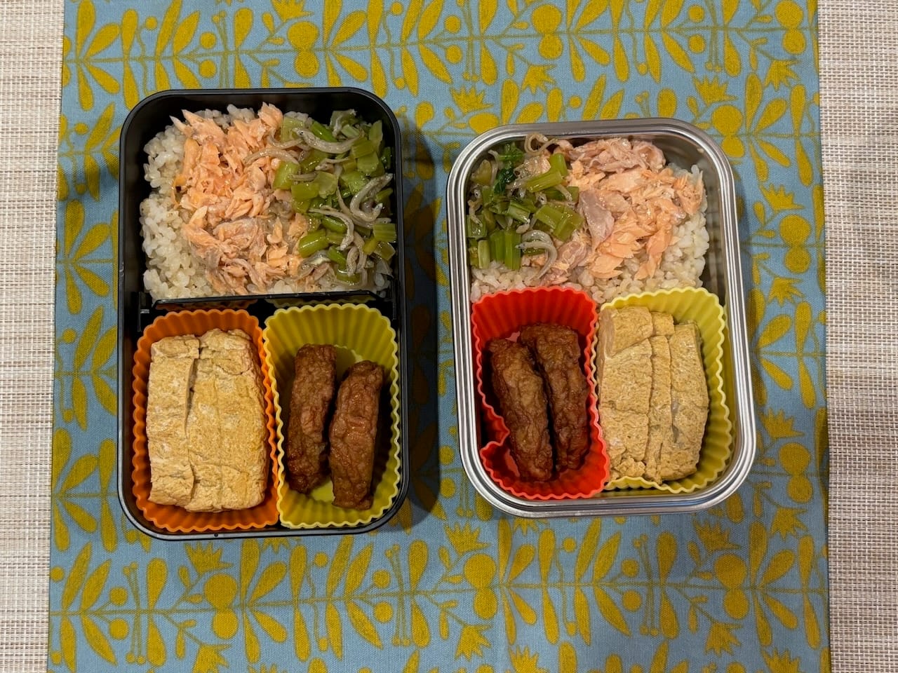 Based on our experience so far, preparing a bento box with minimal fuss is all about keeping things simple and focusing on "modular" meals. For example, prepare several dishes that can be refrigerated for a few days, and assemble different combinations each day.