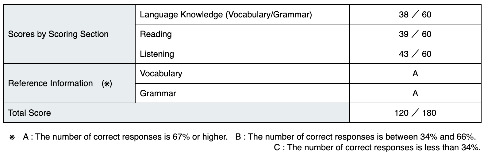 I recently received my results and was very relieved to pass the test with a score of 120/180. This was slightly better than what I achieved in the JLPT N4 test. No matter how many times I have taken an exam, it's hard to shake the feeling of dread and nerves leading up to the release of the results.